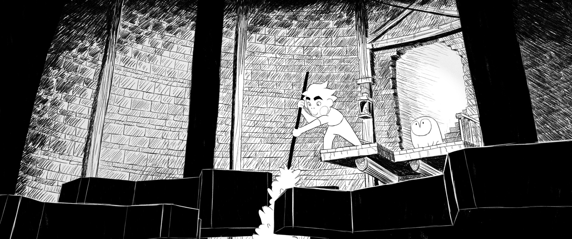 There were definitely a BUNCH of obstacles I had to deal with while making the film, but I’d say the biggest one was actually the process of animating it. Animating the movement of characters has taken me a while in the past, but with this film in particular, there were so many different aspects that needed to have its movement fleshed out in unique ways: For example, how does the boy character move around in a child-like way? How does the windmill and all of its inner-processes function? What does an owlbear pet look like while eating? So many little nuances had to be figured out as I started drawing that ended up taking a lot more time than I had initially planned, but luckily I think paid off in the end.