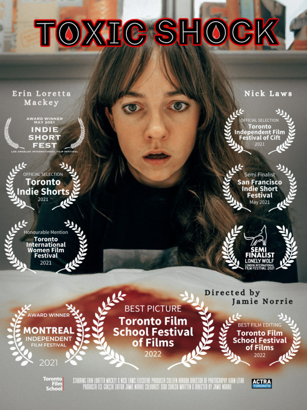Filming during the early days of the COVID19 pandemic was definitely the biggest challenge for everyone helping me with Toxic Shock. Due to provincial rules at the time, we were limited to gatherings of up to 10 people, which meant I could only have 8 crew and 2 cast members on set. All the crew members had to take on more than just one role and wear their masks at all times. The cast could only remove their masks once we started rolling. We also had to prioritize social distancing and constant sanitizing to keep everyone safe. Looking back, I’m still so grateful and impressed that we pulled it all off 🙂